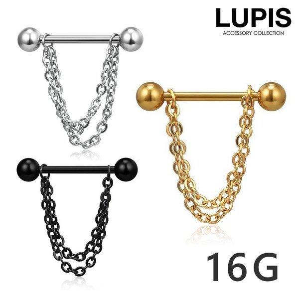 ボディピアス 16G ストレートバーベル 軟骨 シンプル チェーン 耳 ルピスジュエリー アクセサリー ボディピアス