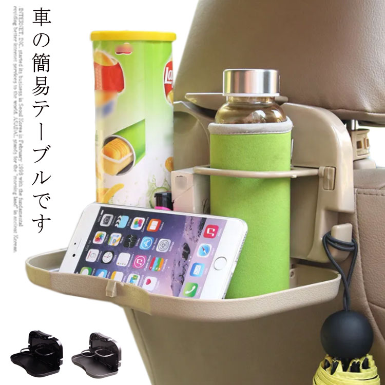 リアトレイ シートトレイ 車 簡易テーブル コンパクト 車 スタンド 便利 グッズトレイ ドリンクホルダー 車内用 汎用 折りたたみ ドライブ 食事 飲み物 缶 ペット