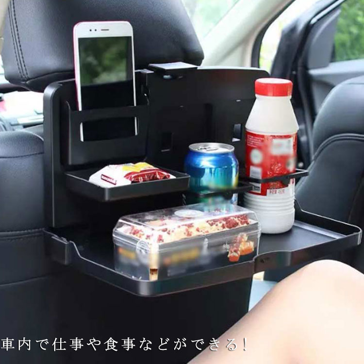 リアシートトレイ 車 トレイ 食事 飲み物 テーブルトレイ 缶 車内 便利 ポケット スマホ 小物 テーブル 簡易テーブル 折りたたみ 車載トレー