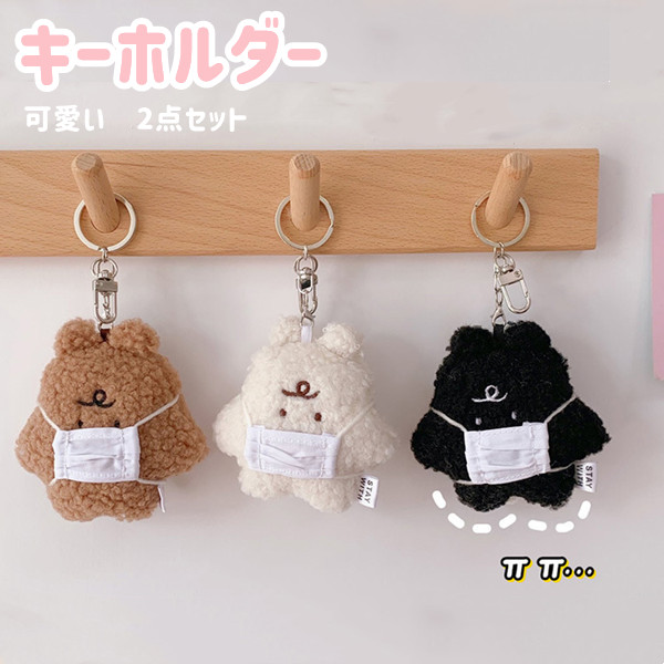 2点入り ぬいぐるみキーホルダー 韓国 可愛い かわいい ぬいぐるみ ふわふわ キーホルダー チャーム ペアキーホルダー マスク熊 キーリング バッグチャーム 可愛いペンダント
