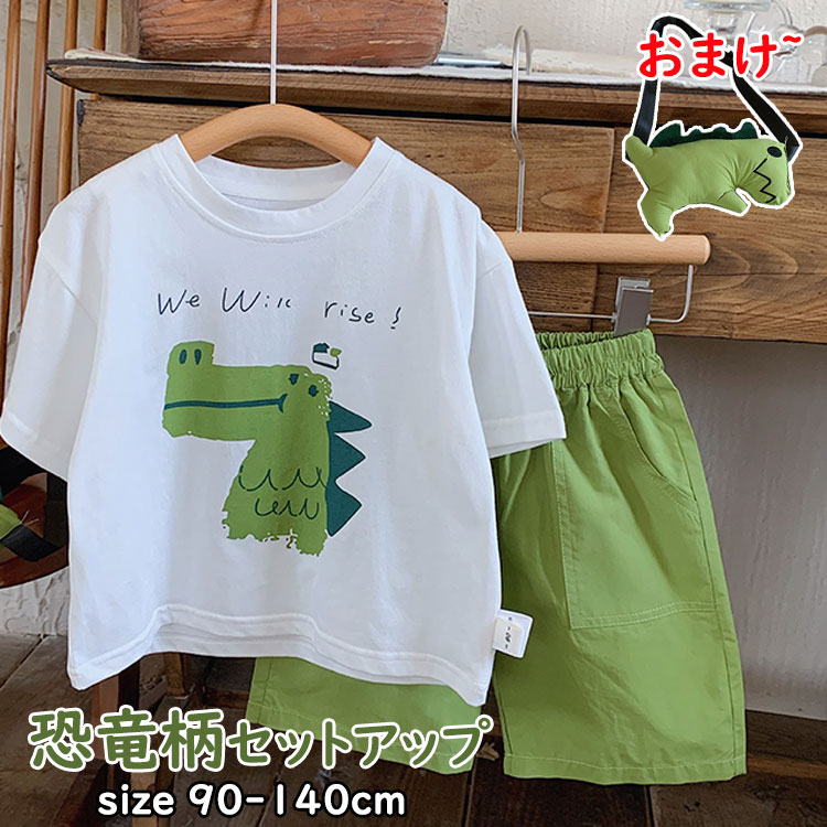 恐竜柄 韓国子供服 セットアップ 2点セット ぬいぐるみおまけ 赤ちゃん ベビー ダイナソー 半袖シャツ ハーフパンツ 男の子 上下セット かわいい キッズ 夏 カッコイイ 子供 カジュアル 90