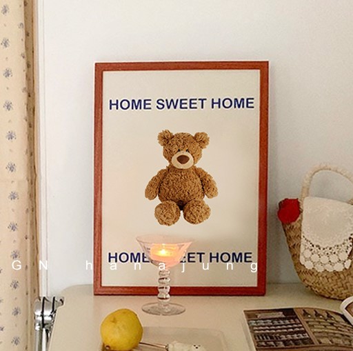 額縁付くまポスター30cm×40cmおしゃれかわいい韓国雑貨インテリアアンティーク北欧ベアロゴぬいぐるみ白ホワイトイエローブラウン木製ウッドフレーム卓上壁掛け絵画立てかけアートアートパネルタペストリー