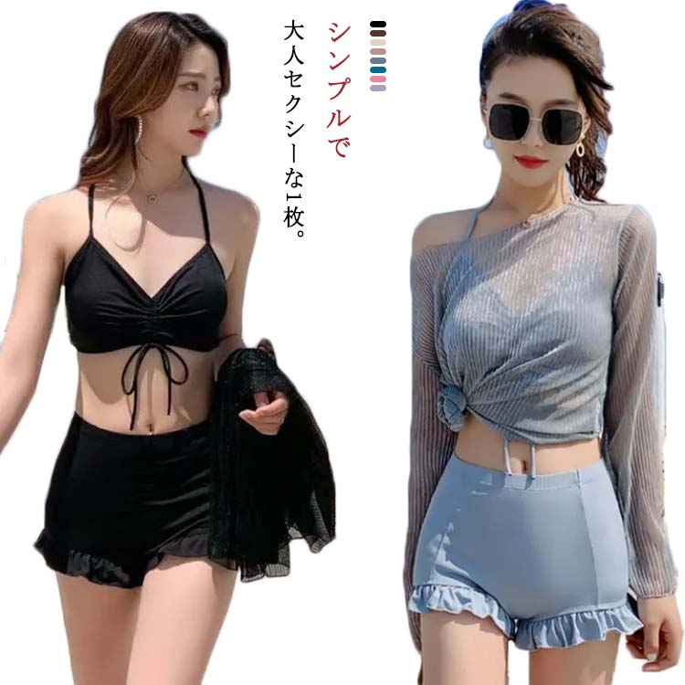 水着 レディース 体型カバー水着 ビキニ サロペット ロンパース 3点セット ぽっちゃり セクシー かわいい セクシー シンプル 露出控えめ