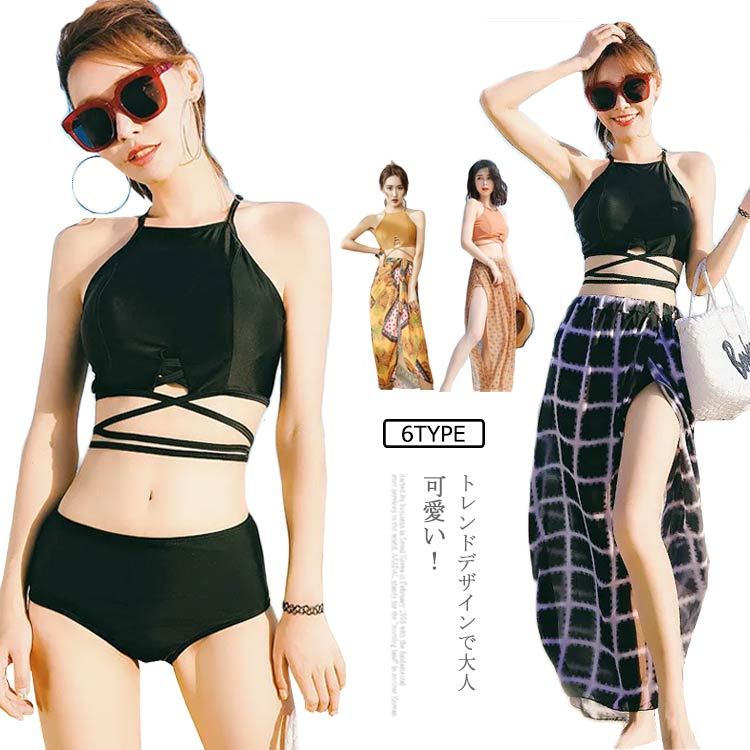 水着 レディース 体型カバー水着 ママ水着 ビキニ サロペット 3点セット セクシー ホルターネック 女の子 小胸 女性用 M L XL 黒 ブルー かわいい シンプル