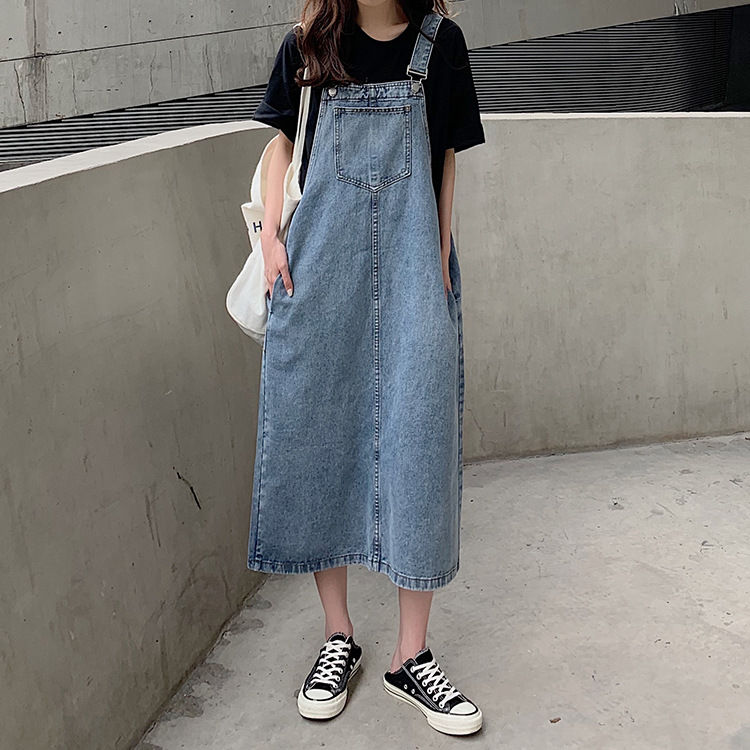 ワンピース 春秋 サロペット デニム きれいめ レディース お出かけ ミモレ丈 フェミニン お洒落 女の子 カジュアル 体型カバー 大人 デート 着やせ 結婚式 同窓会 -1063