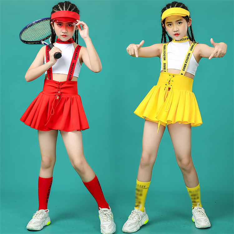 3点セット チア チアガール ダンス 衣装 ヒップホップ ジャズ サロペット スカート hiphop 女の子 ダンス衣装 おしゃれ ジャズ ダンスウェア ジュニア 派手 応援団 舞台効果抜群110~1