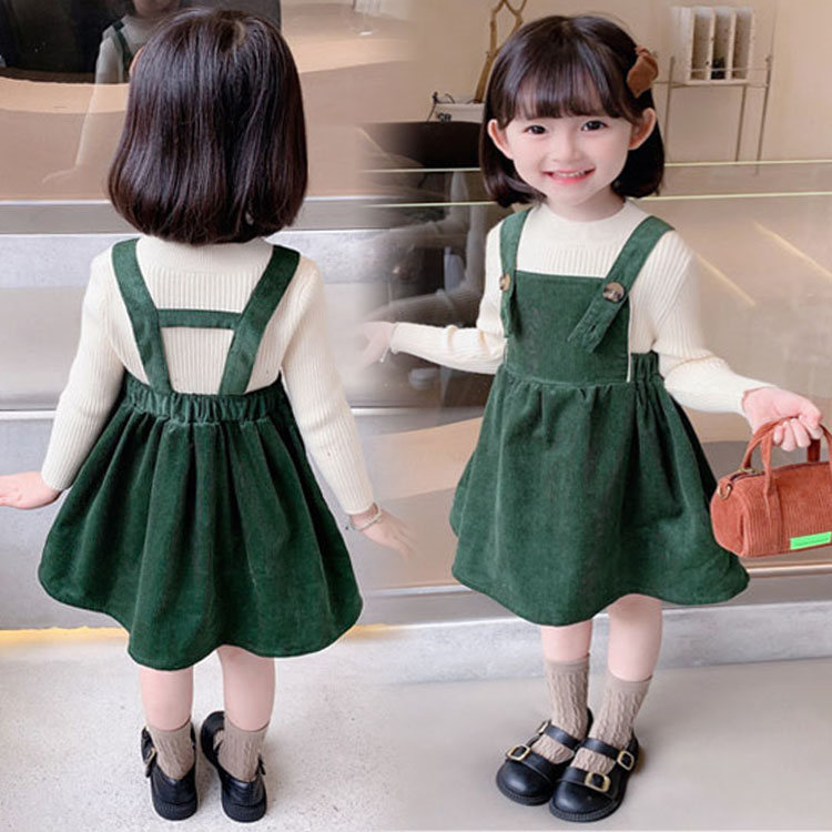 二点セット セーター+サロペット 長袖 ニット グリーン コーデュロイスカート 子供用 女の子 春 秋 おしゃれ お出かけ 通園 可愛い 女児 キッズ 通学 卒業式 小学生 80-130 -109
