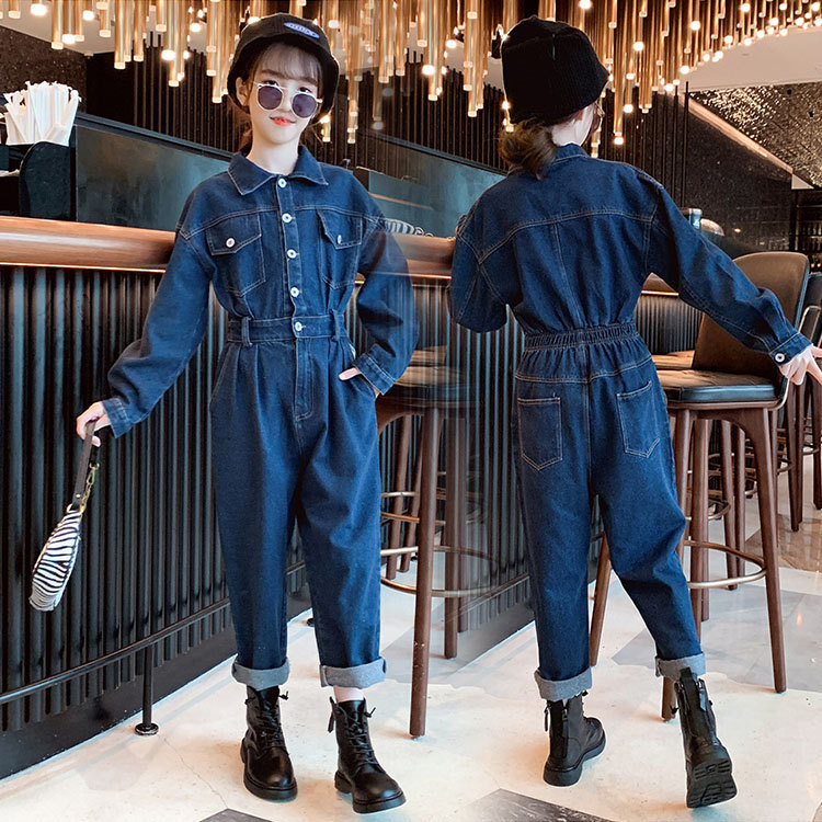 オールインワン デニム 長ズボン キッズ 女の子 デニムパンツ カジュアル お出かけ 子供用 オシャレ 無地 -915