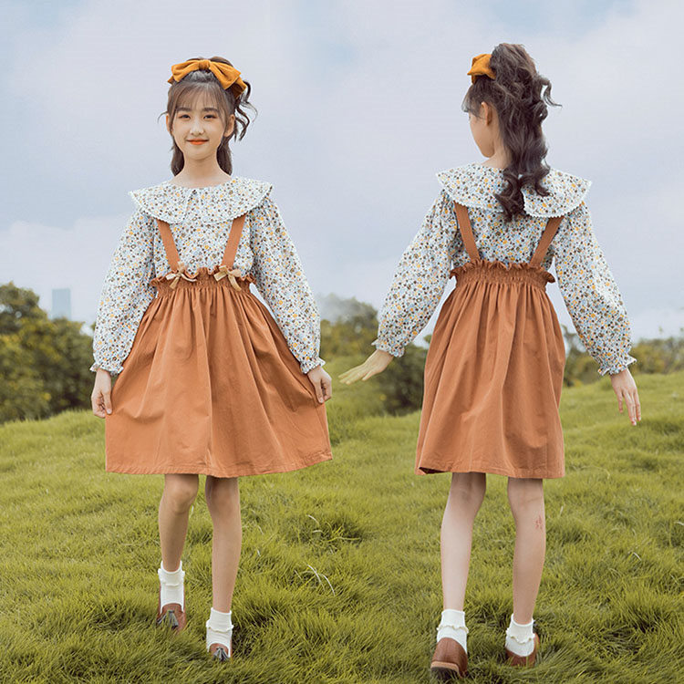 セットアップ 二点セット ワンピース 夏秋 シャツ+サロペットスカート 花柄 パーティー 女児 きれいめ カジュアル 結婚式 子供服 おしゃれ キッズ ライン おしゃれ お出かけ レジャー -9