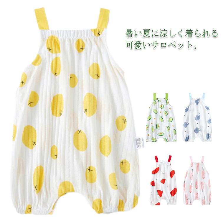 ロンパース ベビー サロペット オーバーオール オールインワン ノースリーブ 女の子 男の子 薄手 ベビー 赤ちゃん 股下ボタン 軽量 ふんわりシルエット 夏 お出かけ 出産祝い プレゼント 全19色