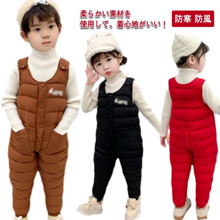 通学 ダウンパンツ 子供ズボン サロペット 厚手 ダウン ベビー服 キッズ服 女の子 長ズボン カバーオール ジャンプスーツ 綿入り 男の子 冬 90 防風 雪遊び 防寒 通園 登山 アウトドア 秋冬