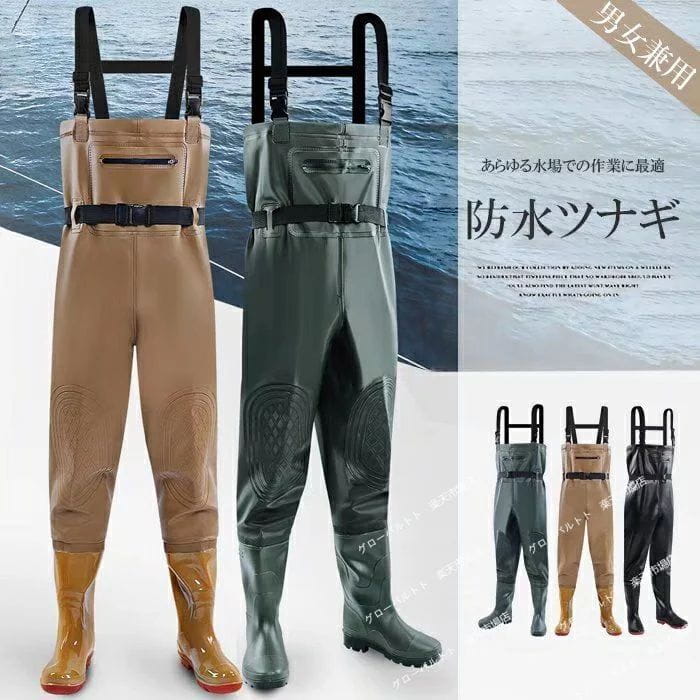 クーポン チェストハイ ウェーダーあらゆる水場での作業に最適 ウェーダー 防水つなぎ サロペット 防水長靴 釣り 田植え 作業服 胴長 水産業 水場仕事 オールインワン 水仕事 胴付長靴 23.0