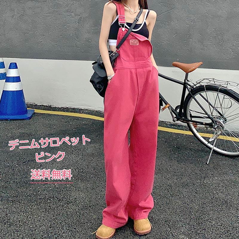 デニムサロペット レディース オールインワン オーバーオール ピンク ワイドパンツ 長ズボン ガウチョパンツ 可愛い 春 夏 秋 冬きれいめ おしゃれ