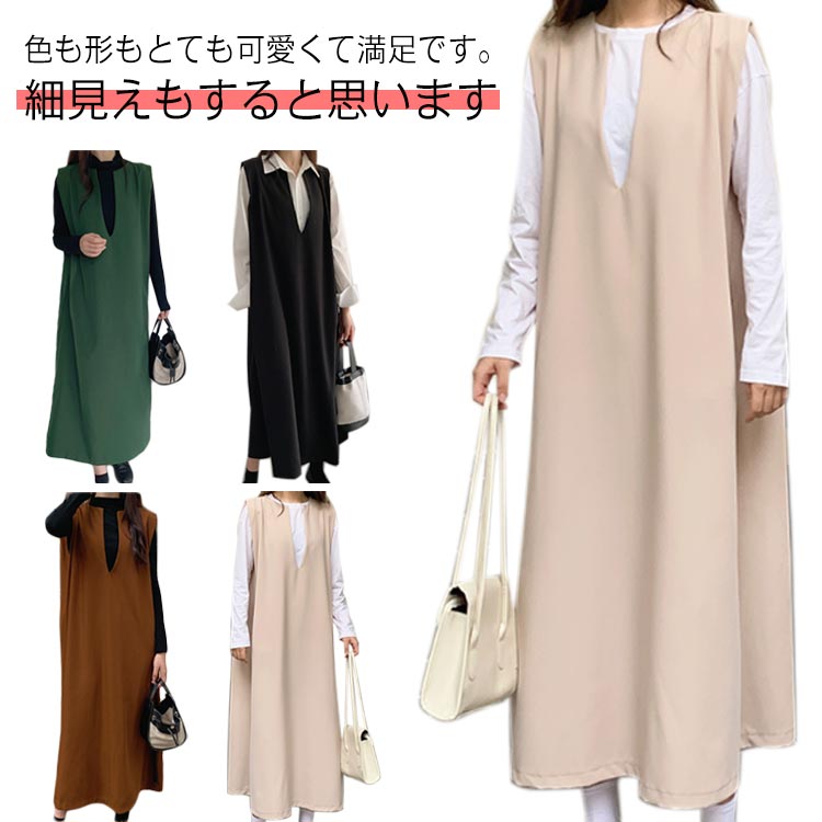 重ね着風 レイヤータンク ワンピース レディース レイヤード ロング丈 ノースリーブ 高見えレディースファッション オールインワン サロペット