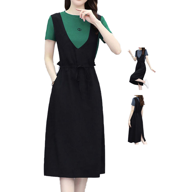 オールインワン 春 夏 ジャンパースカート サロペット 深ネック ワンピース ロング ジャンスカート