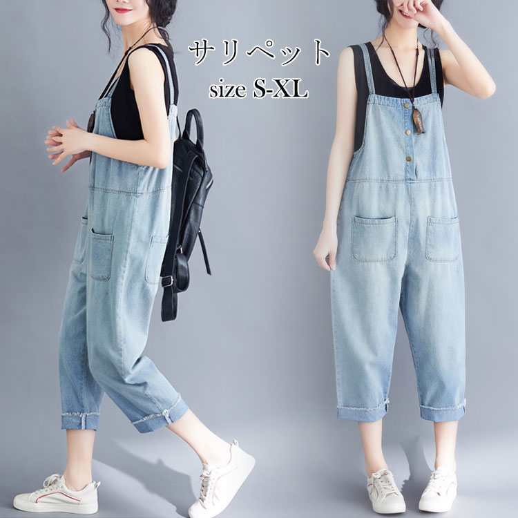 大人可愛い デニムサロペット 夏 サロペット 薄手 オールインワン サルエルパンツ デニム レディース オーバーオール ワイド ロング ゆったり カジュアル 大人 パンツ サロペット 可愛い きれいめ