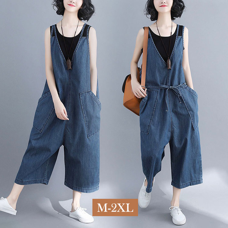 サロペット デニムサロペット 着痩せ 夏 オシャレ オールインワン サルエルパンツ デニム レディース オーバーオール ワイド ロング丈 ゆったり カジュアル パンツ サロペット 可愛い きれいめ M