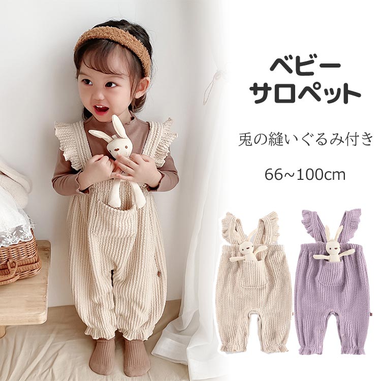 ベビー 赤ちゃん サロペット オーバーオール 女の子 子供服 可愛い お洒落 かわいい オシャレ ラッフル 兎の縫いぐるみ付き 秋 プレゼント 着心地良い 柔らかい 通気性 66 73 80 90 1