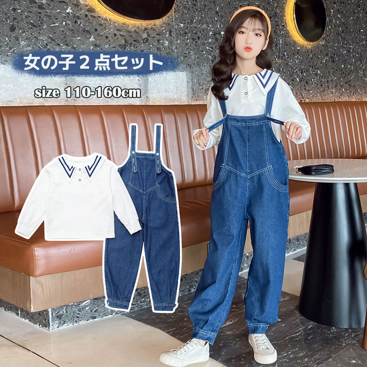 可愛いサロペット2点セット 110 120 130 140 150 160キッズ ベビー マタニティ キッズファッション スーツ カジュアルセットアップ カジュアルパンツセット