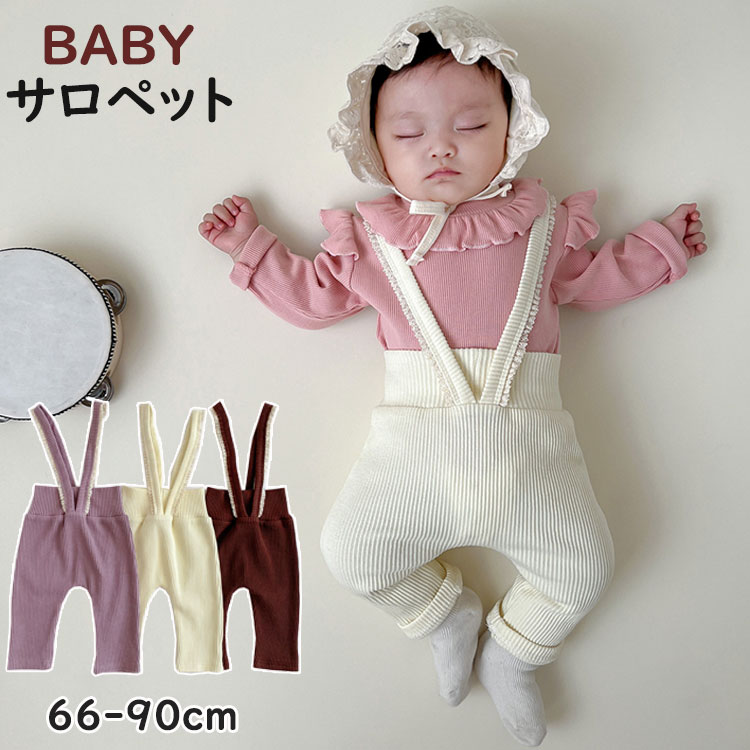 サロペット 長ズボン 赤ちゃん ベビー ベビーレギンス シンプル 女の子 男の子 子供服 ベビーファッション フリル付き 66 73 80 90cm サスペンダー キュートでお洒落 出産祝い ギフト