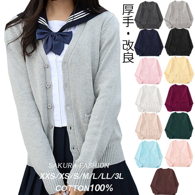 ニットカーディガン 女子高生制服 Vネック 厚め カーディガンレディースファッション トップス カーディガン ボレロ