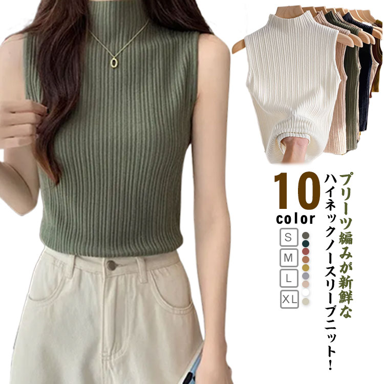モックネック ニット レディース プチハイネック トップス ノースリーブ 春夏 秋 全10色 大人 きれいめ おしゃれ シンプル タートルネック インナー 袖なし 着回し ボトルネック カジュアル 通