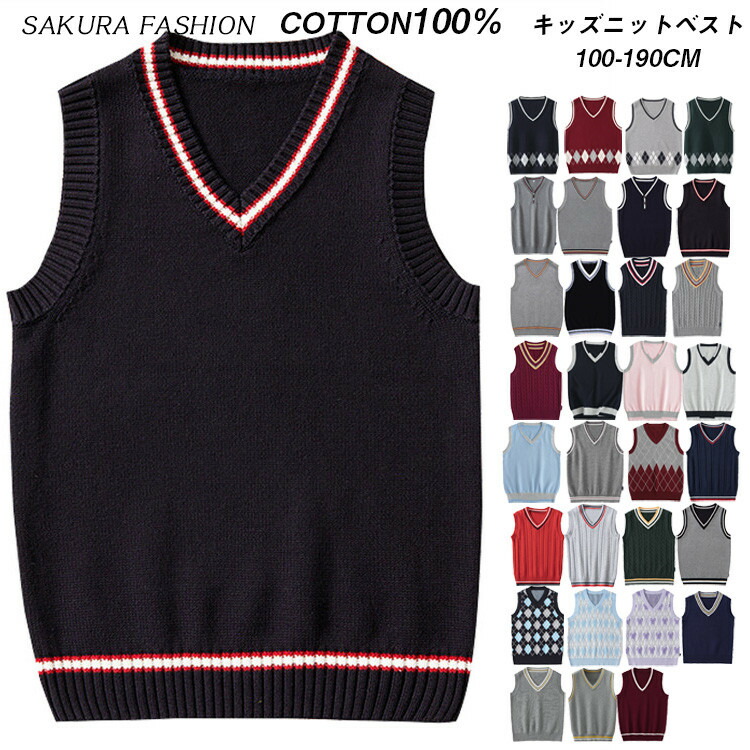 スクールベスト キッズ 女の子 男の子 子供服 スクール ベスト 制服 ニット 春 秋 冬 Vネック 通学 学生 小学生 女子高生 高校生 中学生 綿100% シンプル