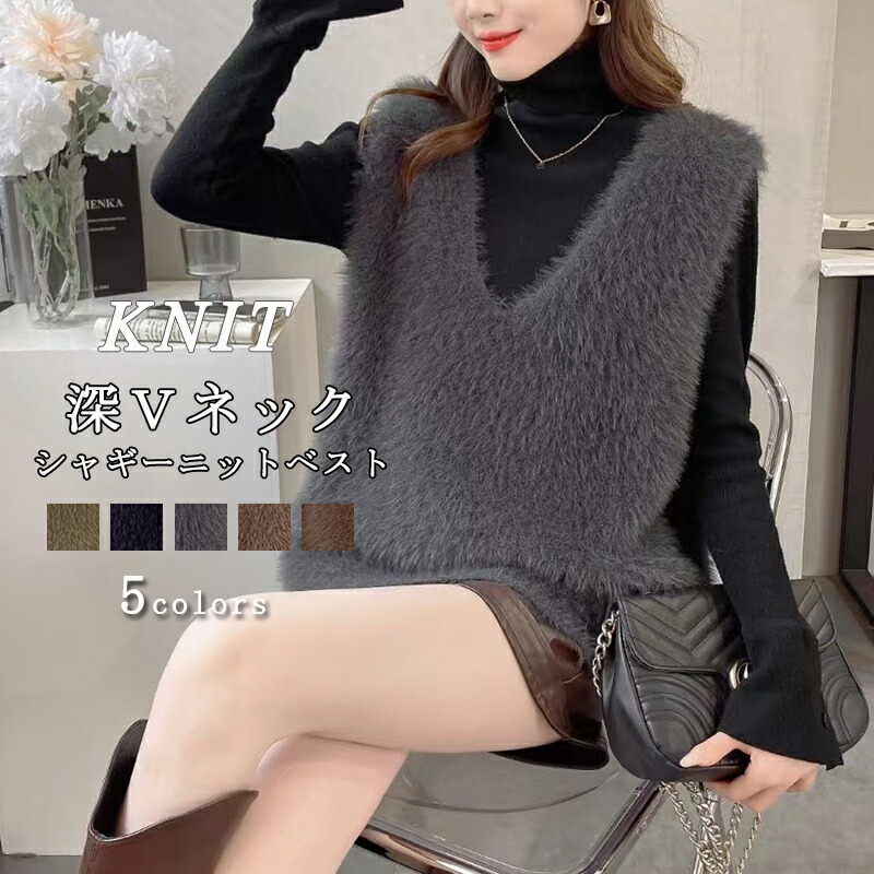 Vネック ベスト ニットベスト レディース 秋冬 シャギーニット シャギーベスト ニット Vネックニット レイヤード シャギー ジレ トレンド トップス 毛足長め
