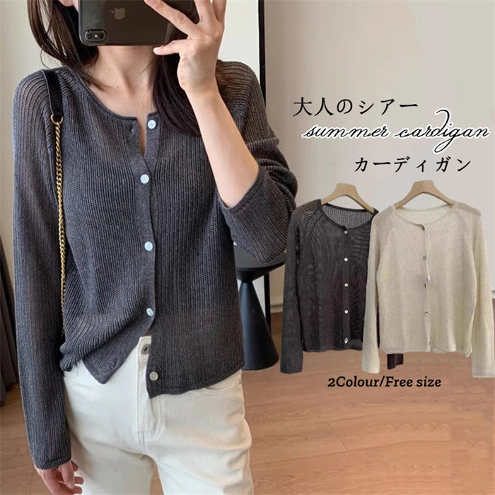 カーディガン レディース 春夏 薄手 トップス 羽織り サマーニット オフィス 洗える 春夏 ゆったり UVカット冷房対策 長袖 サマー カーデ