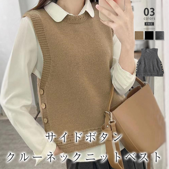着回し抜群ニットベスト サイドボタン ベスト 後ろ長め きれいめカジュアル グレー ブラック ブルー ベージュ