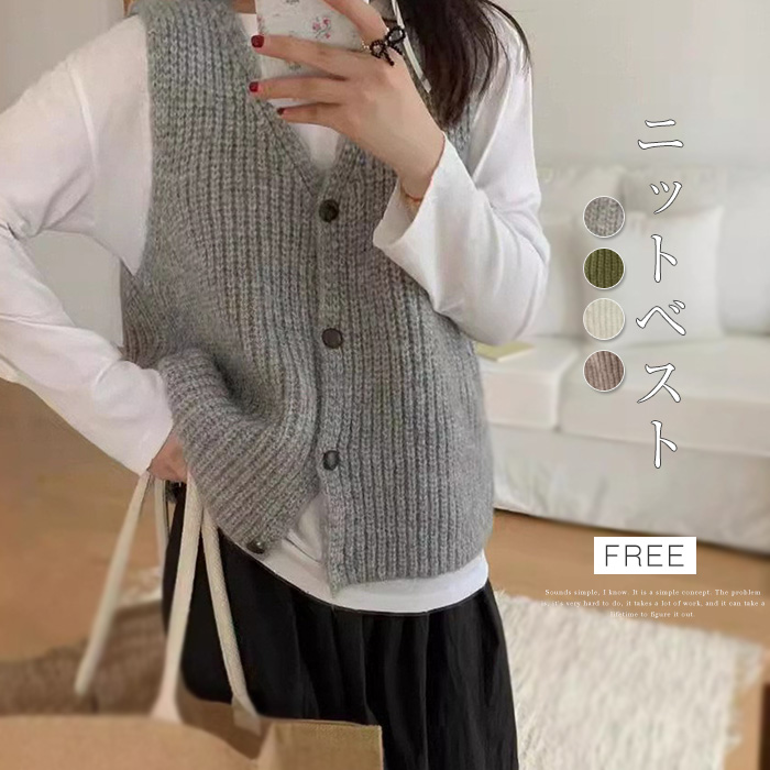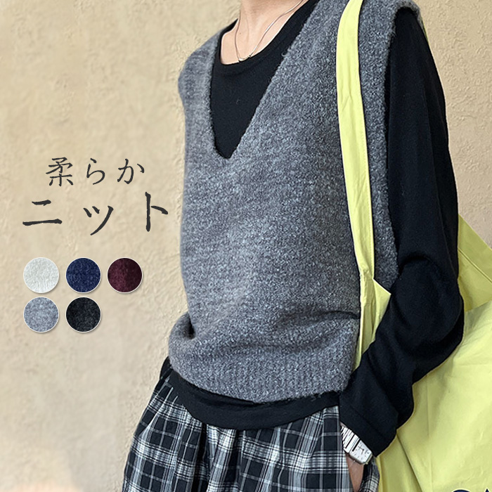 ふんわり もちもち ニットベスト シンプル カジュアル 秋服 冬服レディースファッション トップス ベスト ジレ