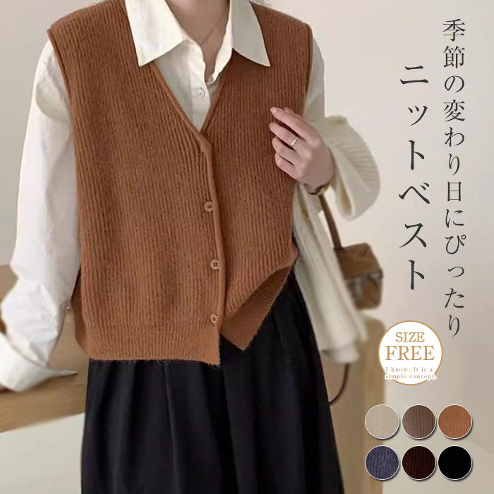 ニットベスト ベスト 秋 コーデ 前開き ニットソー 無地 ジレンチ トップス オシャレレディースファッション トップス ベスト ジレ