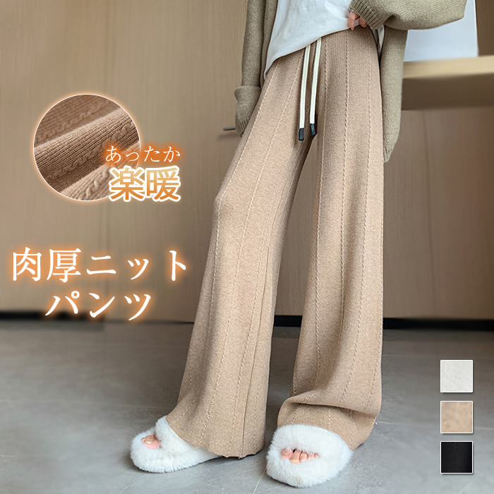楽な穿き心地のあったかニットパンツ 着膨れしないシルエットで、防寒しながら綺麗見せ♪レディースファッション ボトムス パンツ