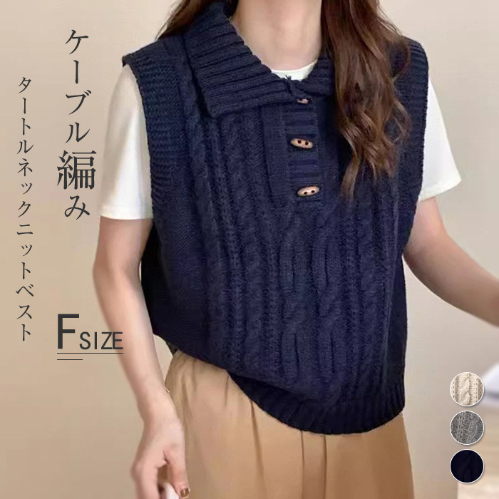 前ボタン 秋冬 ニット ネック 前開き レイヤード 羽織り おしゃれ 着回しレディースファッション トップス ベスト ジレ