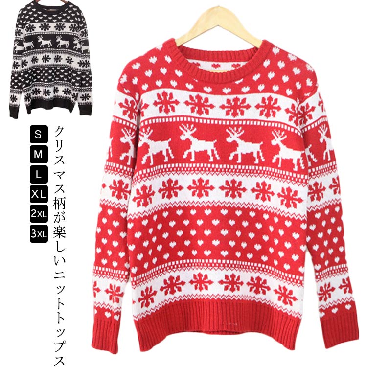 クリスマス セーター トップス ニット 長袖 クルーネック 丸首 レディース 柄編み ジャガードニット 可愛い ギフト プレゼント