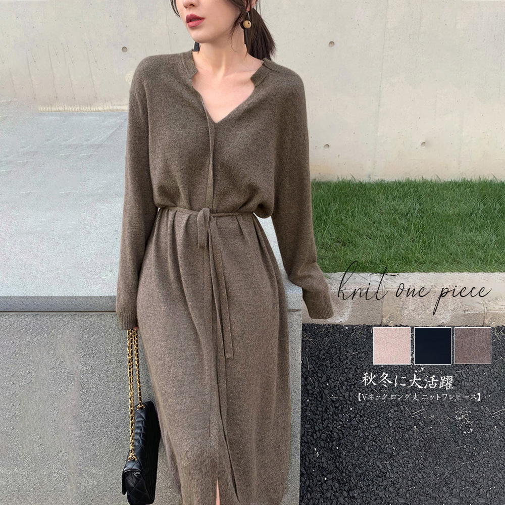 ワンピース ニットワンピース ジャンパースカート ロングワンピ Vネック Aライン マキシ丈ワンピース ロング丈 ワンピ ジャンスカ マタニティ 体型カバー