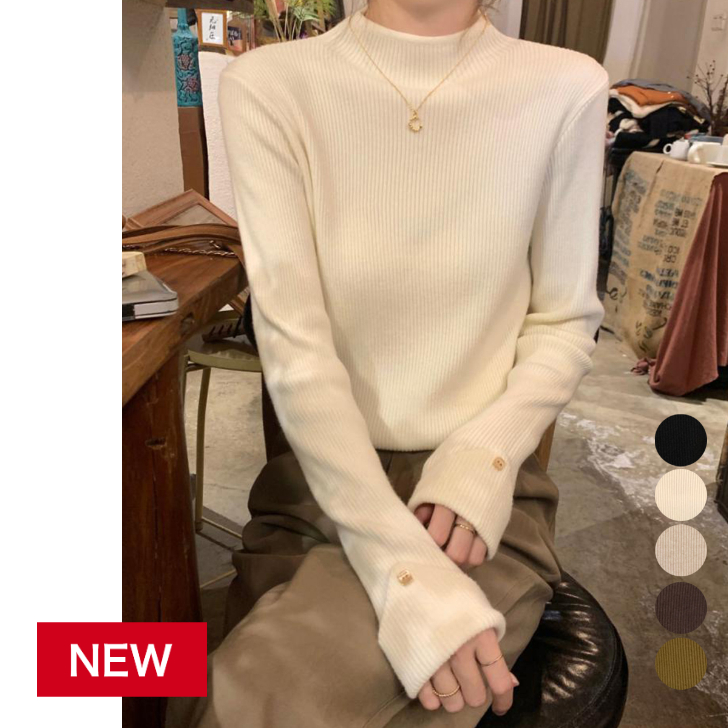 リブニットレディース 大人カジュアルプルオーバー 秋冬 ニットインナー 着回しニットウェアシンプル キレイめ タイトニット