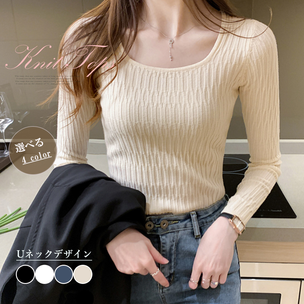ネック ニット トップス レディース 長袖 ニットセーター きれいめ ニットソー 韓国ファッション プルオーバー 秋冬