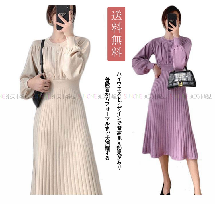 ワンピース 冬 秋 ニットワンピース ハイウエスト 春 ロング タイト レディース きれいめ ロングワンピース 大人 上品 無地 ニットワンピース 長袖ワンピ