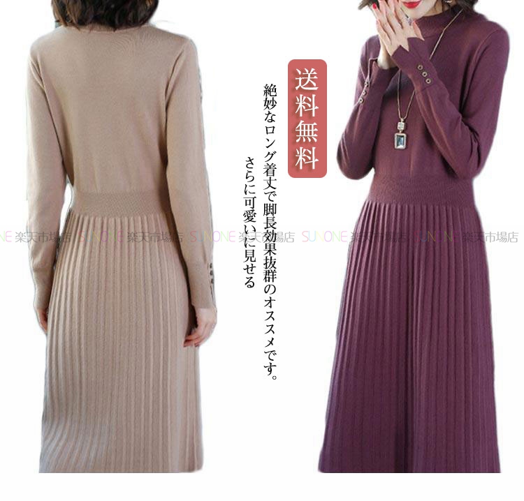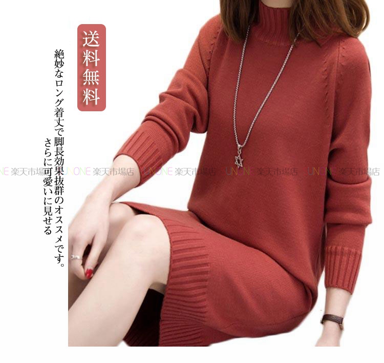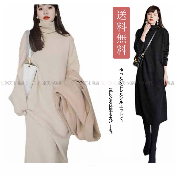 ワンピース レディース ニットワンピース 秋冬 ロングワンピース 長袖 秋 ニット ワンピース 大きいサイズ ワンピース ひざ丈 ハイネック ニット