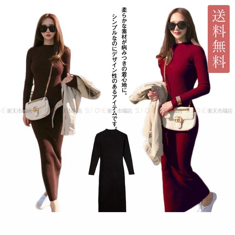 ニット ワンピース タイト ロング ロング丈 ニットワンピース チュニック 秋冬 レディース ニットワンピ きれいめ 大人 セーター 冬 長袖 膝丈 無地
