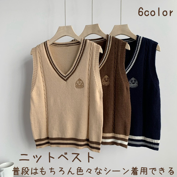 ニットベスト ベスト ネック スクールベスト ホワイト 年間使いやすい 男女兼用 セーター 制服 学生服 高校 中学 通学 ニット スクール 学校 ニット スクール セーター ライン入りニットベスト
