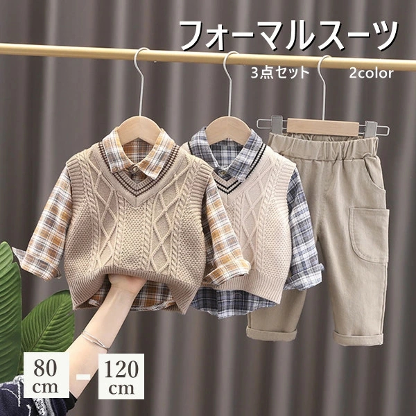 子供 スーツ 2color 3点セット 男の子 フォーマル スーツ シャツ 長袖 子供服 紳士服 ニットベスト 上下セット 洋服 七五三 キッズこども スーツセット 80-120cm