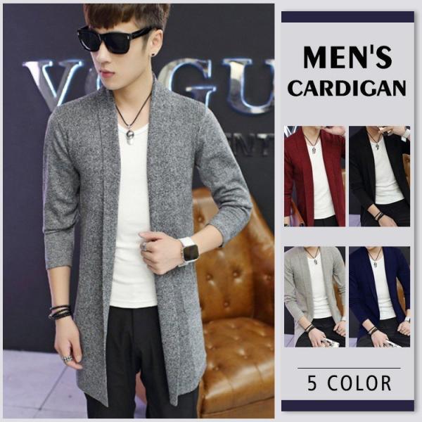 カーディガン メンズ ロング丈 カーディガン 長袖 ニットカーディガン 無地 アウター 羽織 着痩せ トップス 大きいサイズ 暖かい