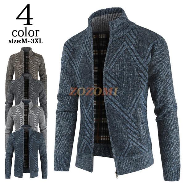 カーディガン メンズ ニットセーター 立ち襟 暖かい 春秋 カジュアル 柄物 保温 ジ ャケット アウター