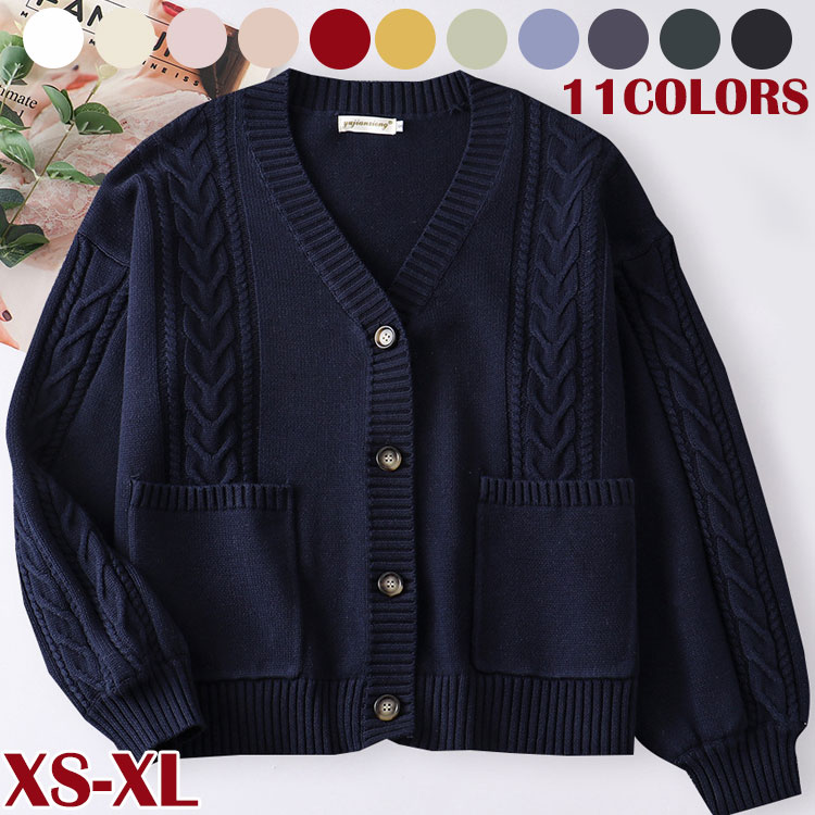可愛い11カラーカーディガン ネイビー グレー ホワイトレディースファッション トップス ニット セーター セーター