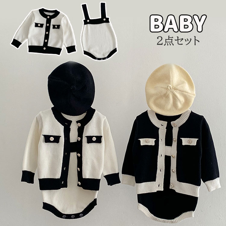 ベビースーツ ニット 2点セット セットアップ 子供 キッズ トップス ロンパース 女の子 赤ちゃん 可愛い 長袖 出産祝い プレゼント ギフト 結婚式 パーティー 冠婚葬祭 記念写真 撮影 ファッシ