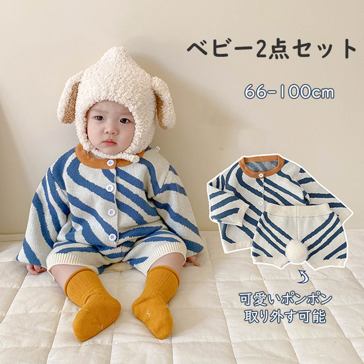 ベビー服 セットアップ ニット 2点セット 子供 キッズ ゼブラ柄 ポンポン付き カーディガン パンツ 男の子 女の子 赤ちゃん 可愛い 長袖 出産祝い プレゼント ギフト 記念写真 撮影 ファッショ