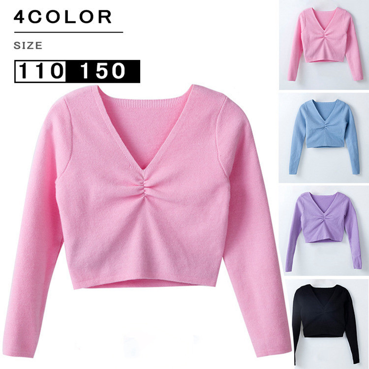 バレエレオタード セーターニット 体操服 子供 バレエ衣装 体操 ダンス 練習服 ステージ衣装 シンプル レッスン着 長袖 コート バレエトップス 春秋 暖かい 110~150 -032
