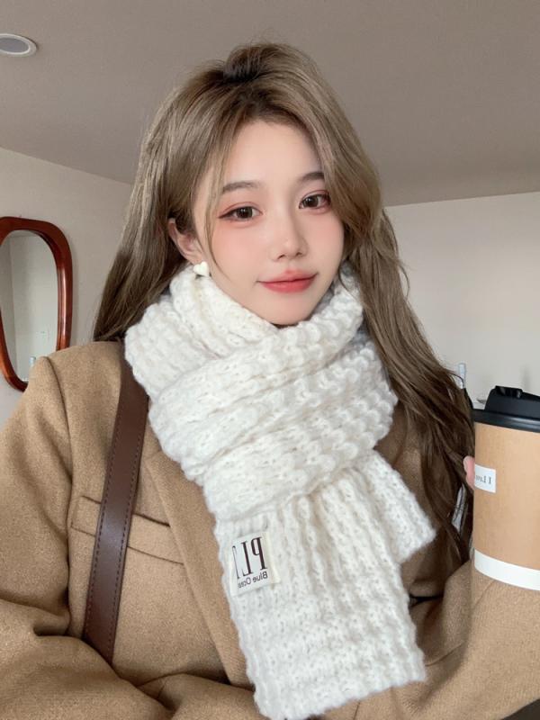 レディース ファッション 秋冬 ニット スカーフ マフラー 女性 韓国 ネックウォーマー かわいい おしゃれ 30×180 シンプル 無地